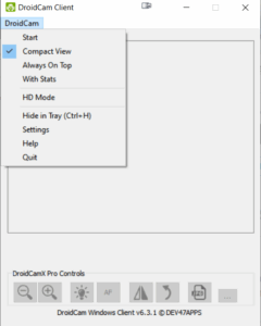 To use it, you first must install the app on your phone from Google Play and the program on your PC via the link on the DroidCam site. There’s a link on the DroidCam site to both the app and the program. For phones with higher resolution cameras, use the DroidCamX application.